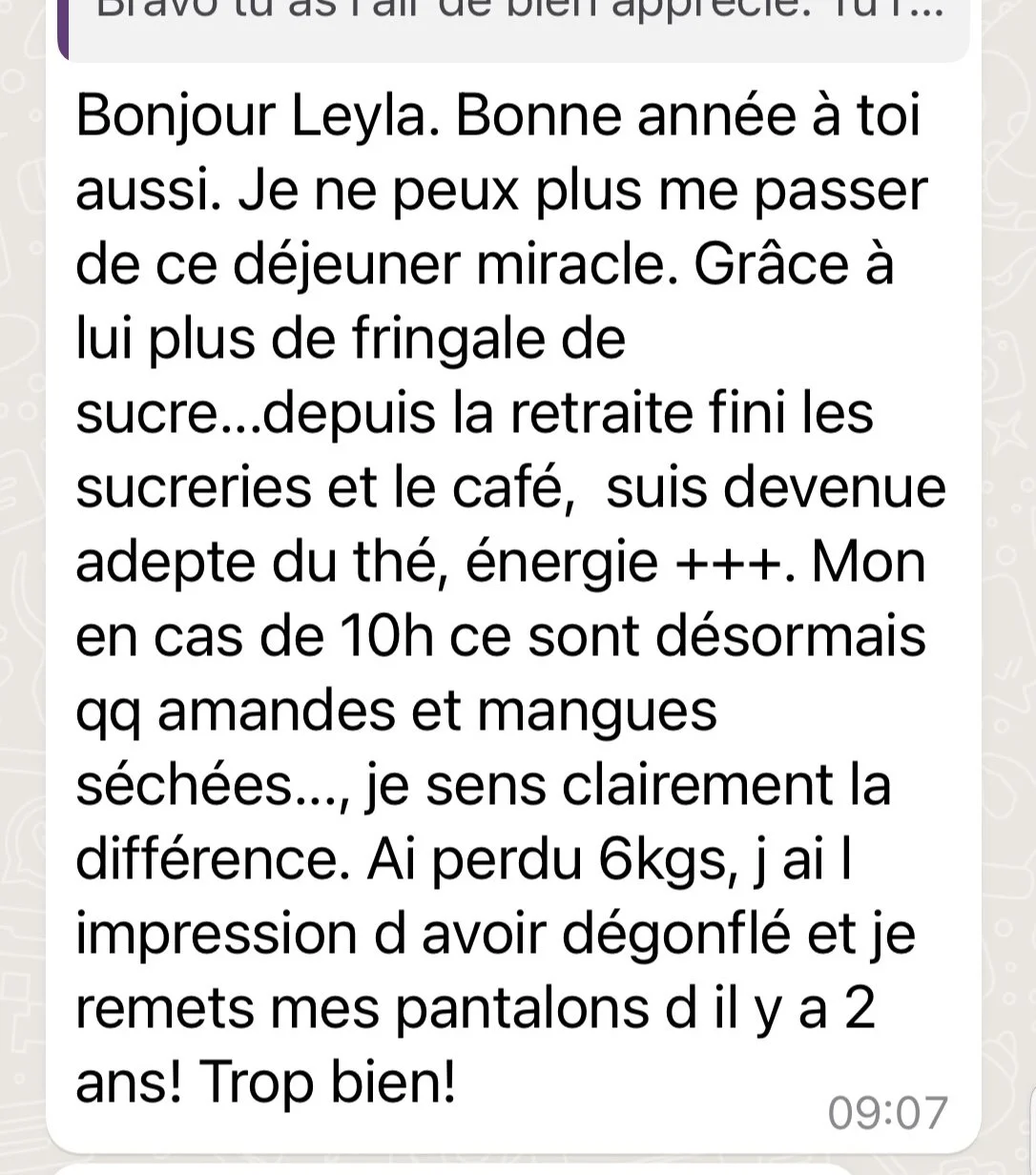 Les ajustements proposés sont simples et réalistes.L’idée est justement de t’aider à mettre en place des habitudes durables, sans que cela devienne une contrainte ou une charge mentale supplémentaire.